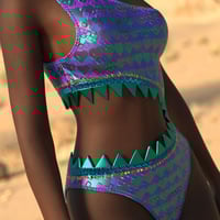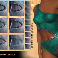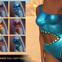 A fun texture expansion for the SharkBite swimsuit. Complete with metallic overlayers, six base suit textures, and pretty sequin detailing.