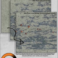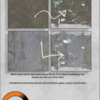 In this third collection we present 'Grime'. This pack contains a nice selection of base stone seamless tile textures, with grime, moss and various other decals to overlay onto any texture imaginable.