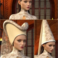 This texture expansion pack brings you 5 brand new texture styles for all High Fantasy Dress and Medieval Headpieces parts.