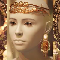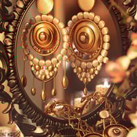 - A pair of statement earrings, featuring a layered concentric design, adorned with 15 unique style presets for versatility in both historical and fantasy settings.