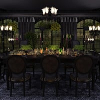 Here is the dining room for the Black House. 75 placed and zeroed props are here to allow you to create a dark and chic dining scene. You will also get shaders and presets to load the whole scene or only the dining room assets.