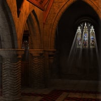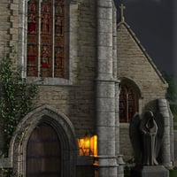 The Church is a complete environment for both Poser and DAZ Studio, with churchyard and panoramic views and four different skydomes. It comes with five different scenes and light sets, 13 cameras and 38 props.