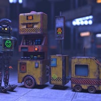 Does your robot buddy need a little pick-me-up whilst on the go? Look no further. The vendor cart will cater to all your robots' needs whilst they're on the run from A to B.