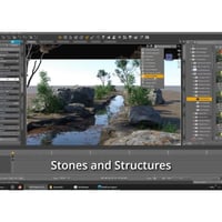 - 00:26 Demonstrating how to use Pestriakov’s presets and instances to quickly build complex stone structures and settings.