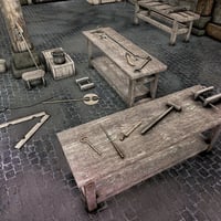 You have The Dungeon, you have The Dungeon Gallows to keep the masses in line now what about those Evil Accessories to help keep the fear alive? This set supplies you with all of the rusty weapons, pokers, scrapers, stocks, racks, stools, crates, tables, chains, shackles and various other implements you will need to fully stock that Dungeon and Gallows!