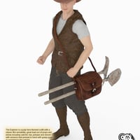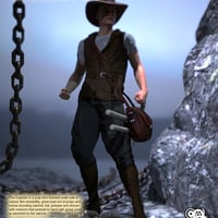 The Explorer is a pulp hero themed outfit with a classic film sensibility, great load out of props and extras including satchel, hat, pickaxe and shovel with versions that preload in hand with grasp pose or parented to the satchel.