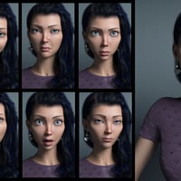 This set of 40 unique, stylized expressions includes everything from smiles and frowns to those authentic quirky faces that everyone makes when thinking hard, caught by surprise, or having fun. Each expression includes a dial and an expression preset.