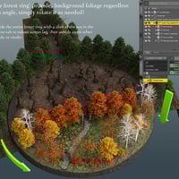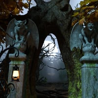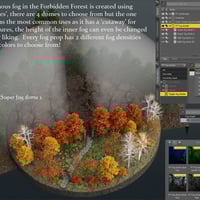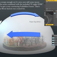 The Forbidden Forest is divided into two parts, the cemetery and the forest just beyond the Gargoyle guardians. There is a pine forest that provides a background that can rotate to cover any camera angle you choose, there is also a fog dome and moon system that provide that eerie dead forest look that is shown here in the promotional imagery. I've created a method of easily changing the moon types, fog dome styles and a way of hiding the "high poly trees" in the cemetery area with a simple drop down menu found in the Parameters tab for each item/system just mentioned. All is explained in a colorful .pdf manual I've included to help you achieve the many looks you see in the images shown here!