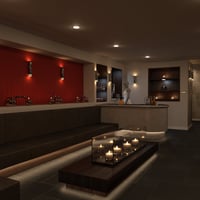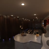 This scene is a fully furnished interior lounge, sauna and relaxation environment. It offers a lot of flexibility. Various nodes can be hidden or removed to use the building as a shell for other projects as well.