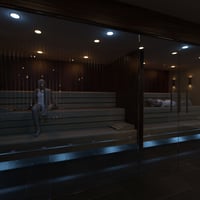 This Health Spa Lounge and Sauna scene consists of multiple entrances with functional doors at each. The main entrance joins with the Health Spa Reception (I've included an image to show the two sets used together); There is a short passageway to a back area which has two doors that can lead to additional rooms/environments and it is my intention for the future to expand further on this series. The main area consists of a large furnished lounge where one of the corner areas offers basic amenities for refreshments. This scene, however, is not only a lounge; it is partitioned to offer an adjoining rest and relaxation room complete with fixed recliner chairs. Both the Lounge and Relaxation room have visibility through the partitions to a sauna area which is fronted with large clear glass panels and functional glass doors. So all up this is a scene that offers you, the artist, a lot of flexibility to be used in various projects.