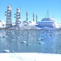 The set comes with multiple material presets for both the environment and buildings. Also included are 4 HDRI maps and render presets for giving your alien ice world a planetary background.