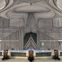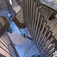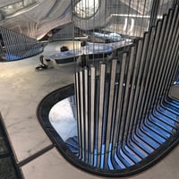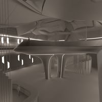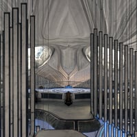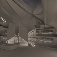 Curves define the space, from the vaulted ceilings and large staircases that sweep through the interior.