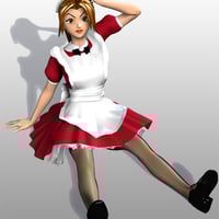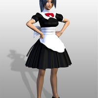 Now Aiko can clean up in her very own anime style maid's outfit. This set comes with a fully poseable blouse and multi-layered skirt, as well as two distinct styles of aprons which can be mixed and matched. The Maid comes with a pair of platform Mary Jane shoes and sheer stockings, complete with a daring garter belt and panties. She has a ponytail hairstyle designed specifically for your Manga style illustrations, and a darling little lace cap to go with it. So bring the maid into your virtual home and let her dust for you with her feather duster or serve you drinks with the accompanying crystal decanter set.