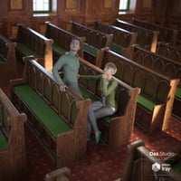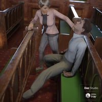 A set of 20 poses for Genesis 8 Male and Female for use with The Meeting Lodge Interior.