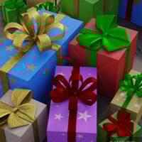 A set of 12 Christmas props including 6 beautifully wrapped presents and a plate of mince pies with a glass of brandy for Santa...for Poser and Daz Studio..