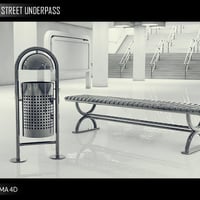A high resolution Street UnderPass, with seating, signs and rubbish bins. A collection of MAT options are included for infinite mix and match possibilities.