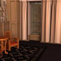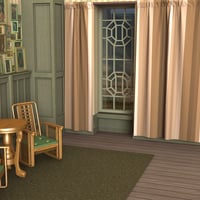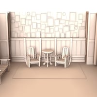 The room comes with two materials. The props include a chair, sofa, table and curtains. There is a preload for the furniture.