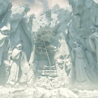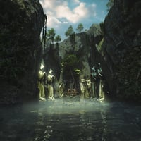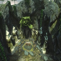 Inspired by the famous movie of the 1980's this biblical relic is situated in a fictional cave surrounded by water and sculptures, the cave can be use for many purposes as well as the sculptures.