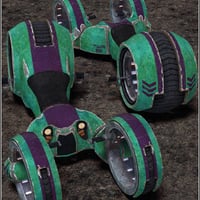 The Syklus is an all new custom designed, futuristic three-wheeled motorcycle for your renders. The Syklus is fully articulated for a full range of motion; pivoting front and rear end, tilting wheels, rotating tires, and adjustable hand and foot grip mounts for starters.