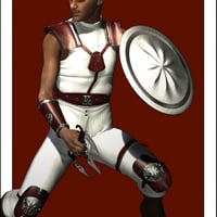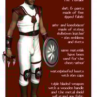 The Travalor: traveling through time wearing a conforming shirt, pants and chest armor, steel-capped boots, and knee and arm bracers. At all times he carries his hazardous blade and a shield of exquisite workmanship.