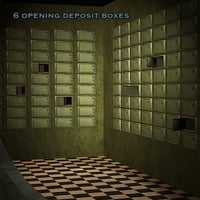 State of the art solid steel door with spinning tumbler and locking bar. The Vault has an internal set of raising bars and a laser light alarm. Six working safety deposit boxes and enough gold to keep even Mr.T in chains. So open a deposit today, or pull a heist. Sorry we are out of free toasters...