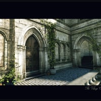 From the mind of Stonemason comes the latest in medieval architecture. This open courtyard is complete with box hedges, potted plants, statues and surrounding buildings.