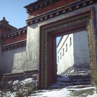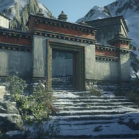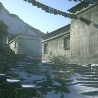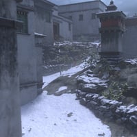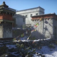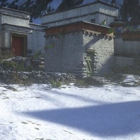 Village in the Clouds is a tranquil mountaintop settlement nestled among snow-dusted peaks.