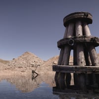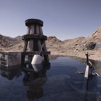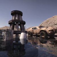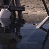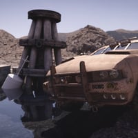 For all your grungy, scrappy, and weird renders, this stunning scenery is a mix of piles of stones, dirt, water, wooden pillars, and a chained anchor.
