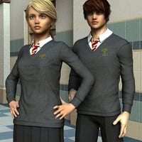 V-Neck Sweater/Pull Over Add-On for both Time for School Outfits for Genesis 2 Male(s) and Female(s).