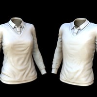The Sweater has a built in Shirt Collar and Tie, both of which are hideable via material presets. The badge emblem is also hideable.