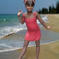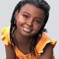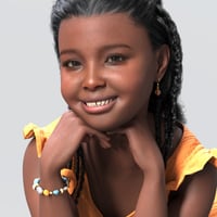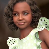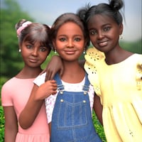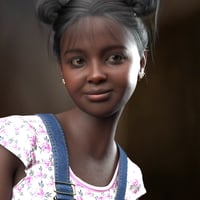 Tina is a young 3D character designed for Genesis 9, featuring three dark skin tones and a soft, cheerful appearance.