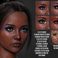 TMHL Exotic Eyeliners is an add-on makeup set for Genesis 9. It comes with numerous different formats to apply the eyeliners and numerous colors and glitter options. A great set to add that extra bit of flare and glamor to any character.