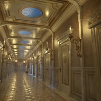 To Wonder for A Curious Hallway Iray is an Iray update with carefully converted materials including polished floors, satin walls, plush fabric curtains, warm candle wax with translucency, and shiny metallic architectural elements.