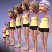 Toon Generations 2 is a cartoon base character built on Genesis 3 Male and Female figures. With a simple age dial, the character can be customized to be any age from 1 to 60 years old.