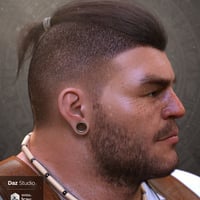 A top knot hairstyle for Genesis 3 Male and Female and Genesis 8 Male and Female. Also a beard and mustache for Genesis 3 Male and Genesis 8 Male.