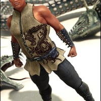 Looking for a bare-armed, tough guy look for your fantasy fighters? This 3D Male clothing texture set is ready for a rough-and-tumble fight with the local orcs and other monsters. Choose between forest green or an intricate dragon fighter design.