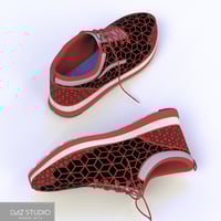 Shoes were designed to look good with tiling textures for ease of texturing. To that end there are over 230 tileable textures, normal maps, displacement, etc. so you can create hundreds of textures. Also to get you started there are also material presets to lay down some base texture styles. Textures and presets are included for both 3Delight and Iray renderers. The shader presets can even be used on other models and are not limited to just the shoes. Sock models can be tailored to look like crew socks or tube socks by selecting the appropriate material preset and sock textures.
