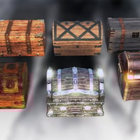 The chests vary slightly in size and wear, suitable for use as individual or grouped assets in coastal, shipwreck, dungeon, or underground hoard environments.