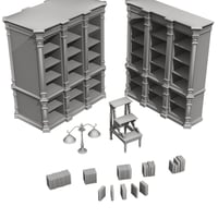You'll have plenty of books props for your library or study. Two bookcase options, double and half, along with a fine step stool and fine table lamp will add the perfect detail to your library or university study hall. Finally, dozens of possible book combinations ensure you'll have a convincing bookcase.