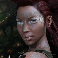 This set also includes a bonus Genesis 8 Female character, Pix Darga. She comes with 4 detailed face paint options, 4 full tribal body paint, 4 options for the arms and legs and 2 torso skin options plus remove painted mats. She also comes with a full mat base skin, 7 eye colors, 3 eye reflections, 6 subtle eyeshadows, 6 lip colors and 4 eyelash options.