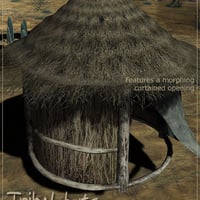Features- Hut1.PP2 (a small 2 person hut with a curtained opening, the curtain features 3 morphs for opening/closing, flapping and crumple)
