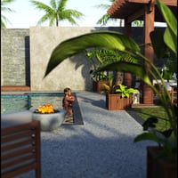 The Tropical Retreat is a modern and lush outdoor environment set.