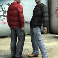 Jacket and pants set for Michael 4, Hiro 4 and Michael 4 Elite. The jacket comes with three body handles for better fitting around the hip area and four textures: black, blue, brown, or red. The cargo pants have two textures, black or blue. All textures have a resolution of 4000 x 4000 pixels.