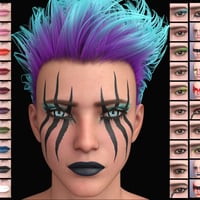He has many makeups, including 5 Skin Colors, 10 Lips, 10 Eye Colors, 20 Makeup, and 10 Nails Color Options.