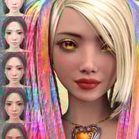 This product contains a character set for Hanako 9, with a new head and body custom sculpted in Zbrush. She is so cute, and also ready to mix with other Genesis 9 Female morphs to produce the appearance of your favorite characters.