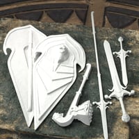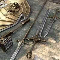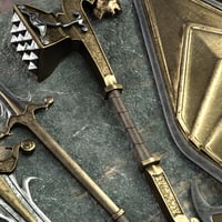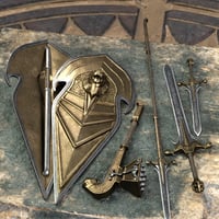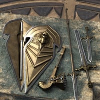 Forged in the tradition of fantasy, this lethal, barbaric-tribal weapons pack includes a dagger, shield, spear, sword, and war hammer.