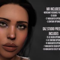 Twizted Face MakeUp Merchant Resource is a resource for Genesis 9 that includes 15 Blush Options, 5 Contour Options, 17 Highlighter Options, and Multiple Colors and Utilities for Daz Studio Material Presets. It also includes a PSD file that can be used as a Merchant Resource. Use with the Other Twizted Makeups for the ultimate makeover!