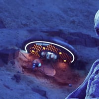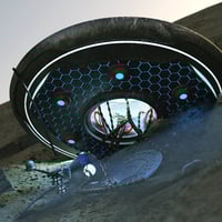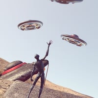 A UFO Crash Site, complete with Desert, Shrubs, & Cliffs. For extra versatility a complete undamaged UFO has been included for space and sky renders.