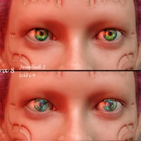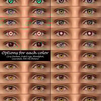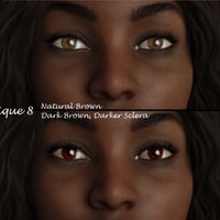 A preset is included to use the morphs with any character's existing textures, but you are going to want to explore the 24 realistic and varied eye colors included, each of which is unique and derived from photographic sources for maximum realism. Presets are included to darken the iris in three levels to provide many more possible shades. I also had fun creating 12 fantasy and sci-fi textures which can really enhance any robotic, alien or fantasy characters. There is a choice of 6 maps for the sclera, ranging from white through to very bloodshot (great for vampire characters!).