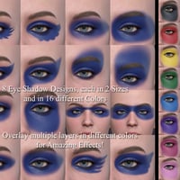 - 03 insert eye shadow shapes, again in 16 different colors, intended to accent the main eye shadows with complementary or contrasting colors for even more spectacular results